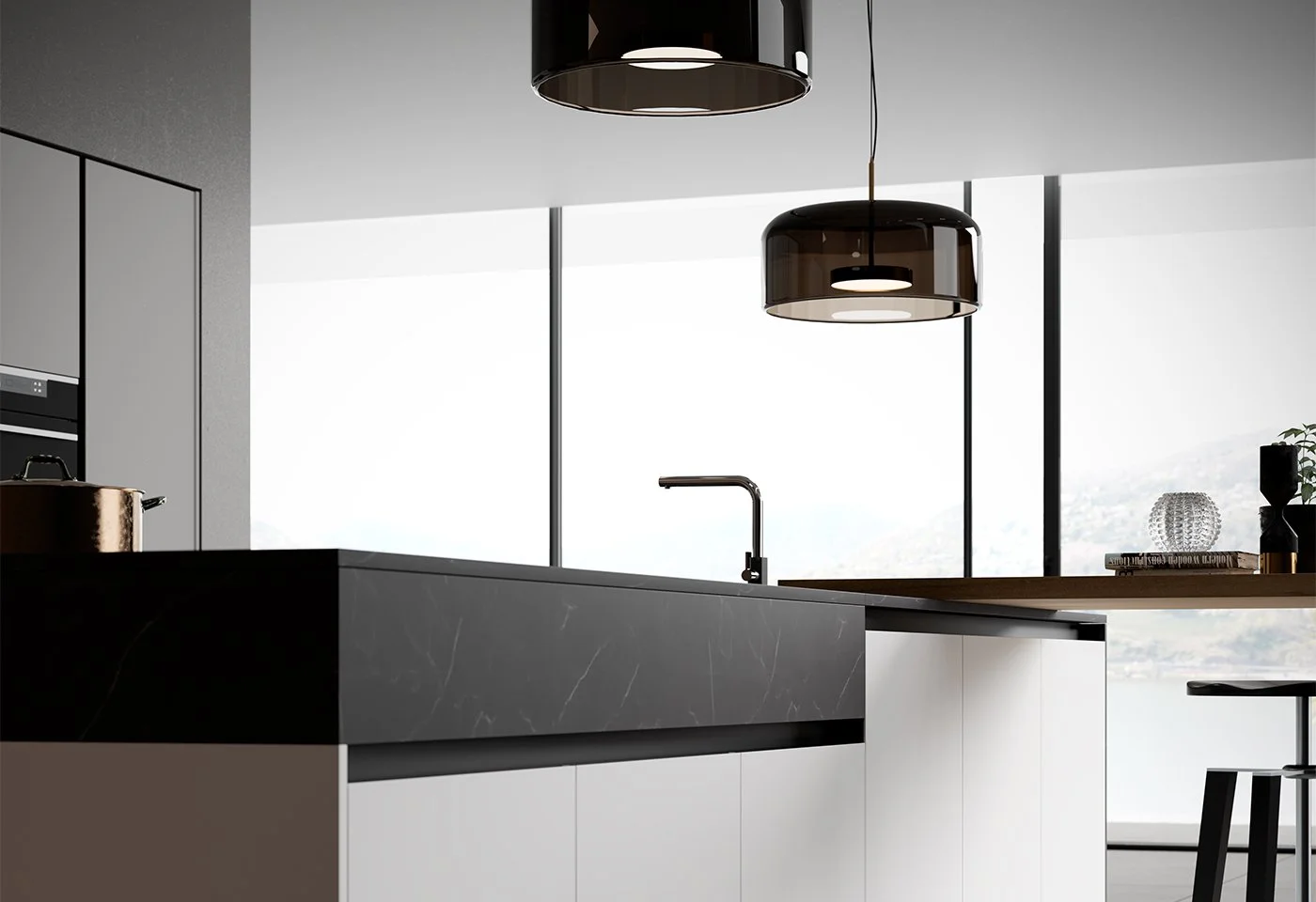 The Glass range is a true designer kitchen, featuring aluminium technical doors with glass fronts and a grip-profile opening system. Available in glossy, matte or HPL finishes, Glass brings an effortlessly high-end aesthetic to any home, with the added strength and durability of its technical construction.
